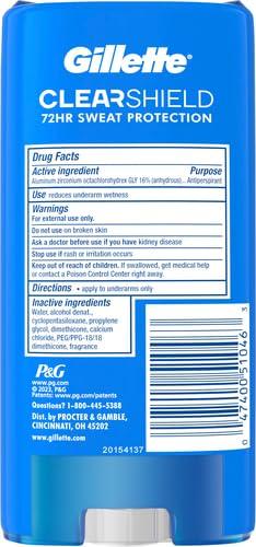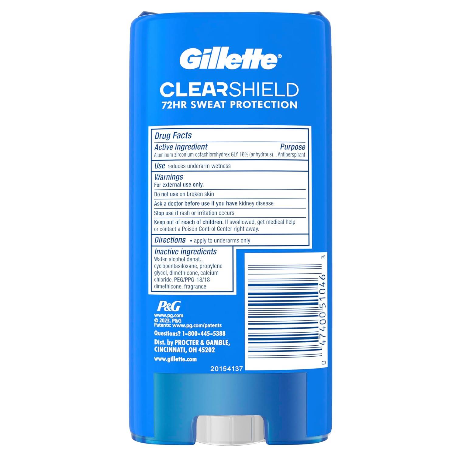 Stay confident with Gillette Clear Gel Anti-Perspirant/Deodorant. Gillette Clear Gel provides all-day protection from wetness and odor. Its triple protection formula contains active odor blockers, a transparent dry shield, and all-day scent technology that goes on clear and lasts all day. Keep your cool in any situation with Gillette Clear Gel.