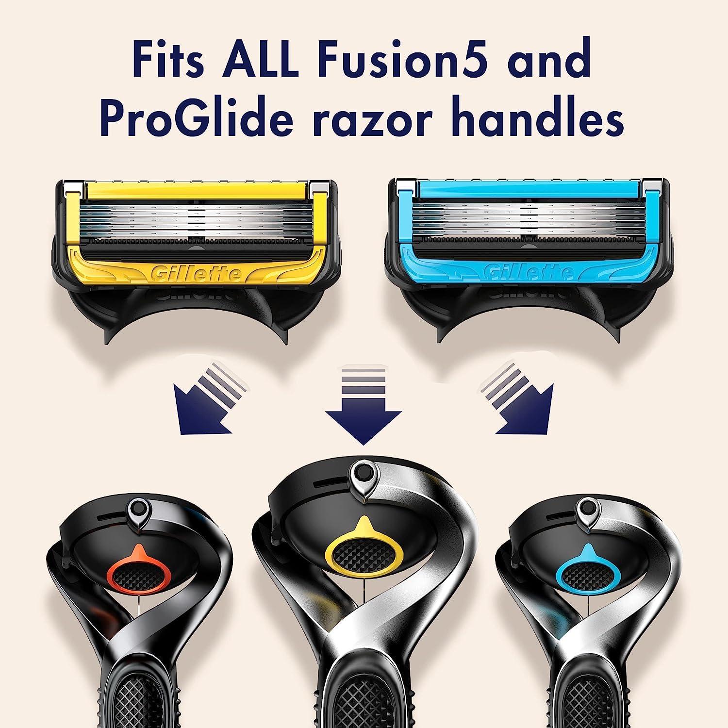 The Gillette ProGlide Chill and Shield men's razor blades with lubrication before and after the blades, shields skin from irritation and cools skin for a refreshing sensation during your shave giving you uncompromising closeness and comfort. Both the Chill and Shield blade refills for men feature 5 antifriction blades for a shave you can barely feel. The blades are spaced closely together for incredible comfort with a precision trimmer on the back for hard-to-reach places and for styling your facial hair just the way you want it. The enhanced lubrastrip (vs. Fusion5) has more lubricants for comfort and glide. For ProGlide Chill, the blue Lubrastrip gives a cooling, refreshing sensation during your shave. For ProGlide Shield, the yellow lubrastrip before & after the blades shields from irritation while you shave. Soft microfins gently stretch and smooth your skin while a microcomb helps guide your hair for a close shave from our thinnest blades. The ProGlide Chill and Shield razor for men features our sharpest blades (first 4 blades) which help get virtually every hair effortlessly. One razor blade refill lasts up to one month of shaves. All ProGlide Chill and Shield blade refills can fit all Gillette 5-blade razor handles (excluding GilletteLabs).