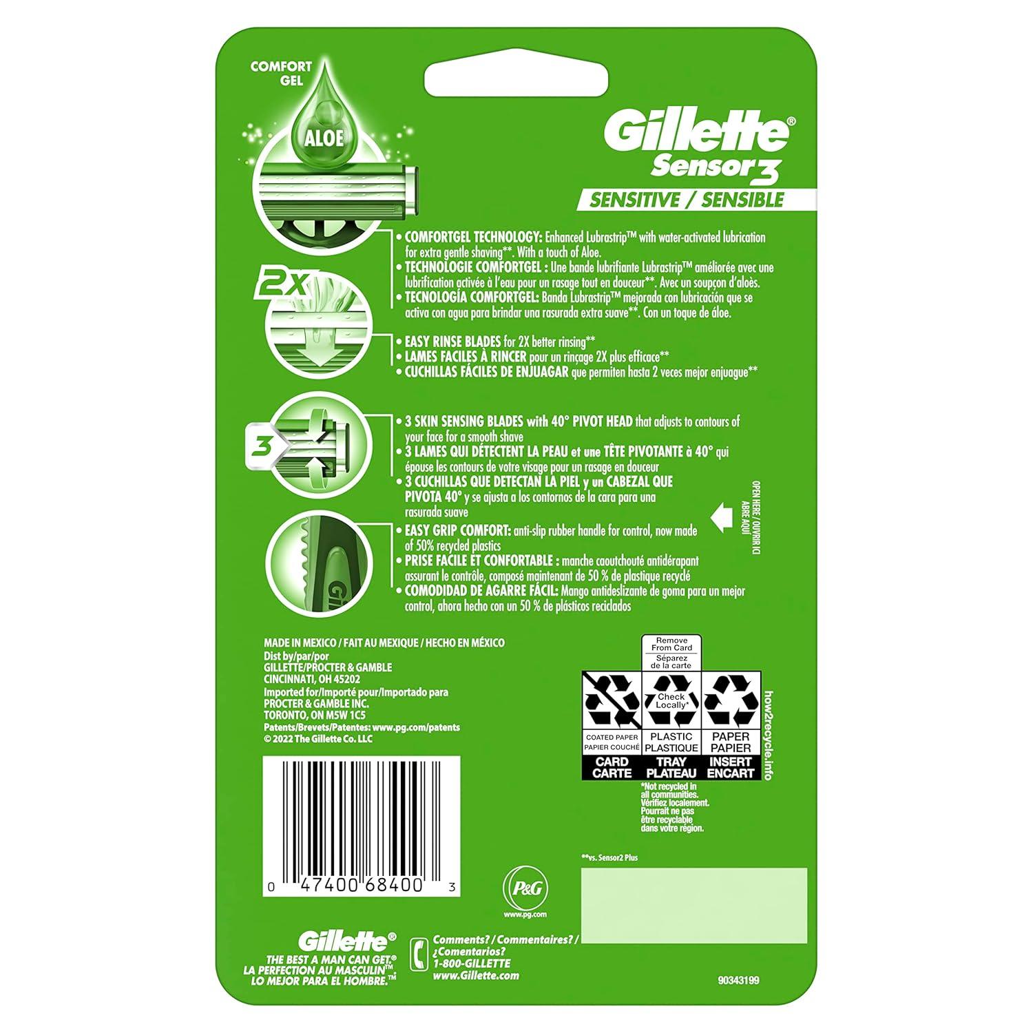 Gillette Sensor3 Sensitive Men's Disposable Razor, 12 Razors(Green)