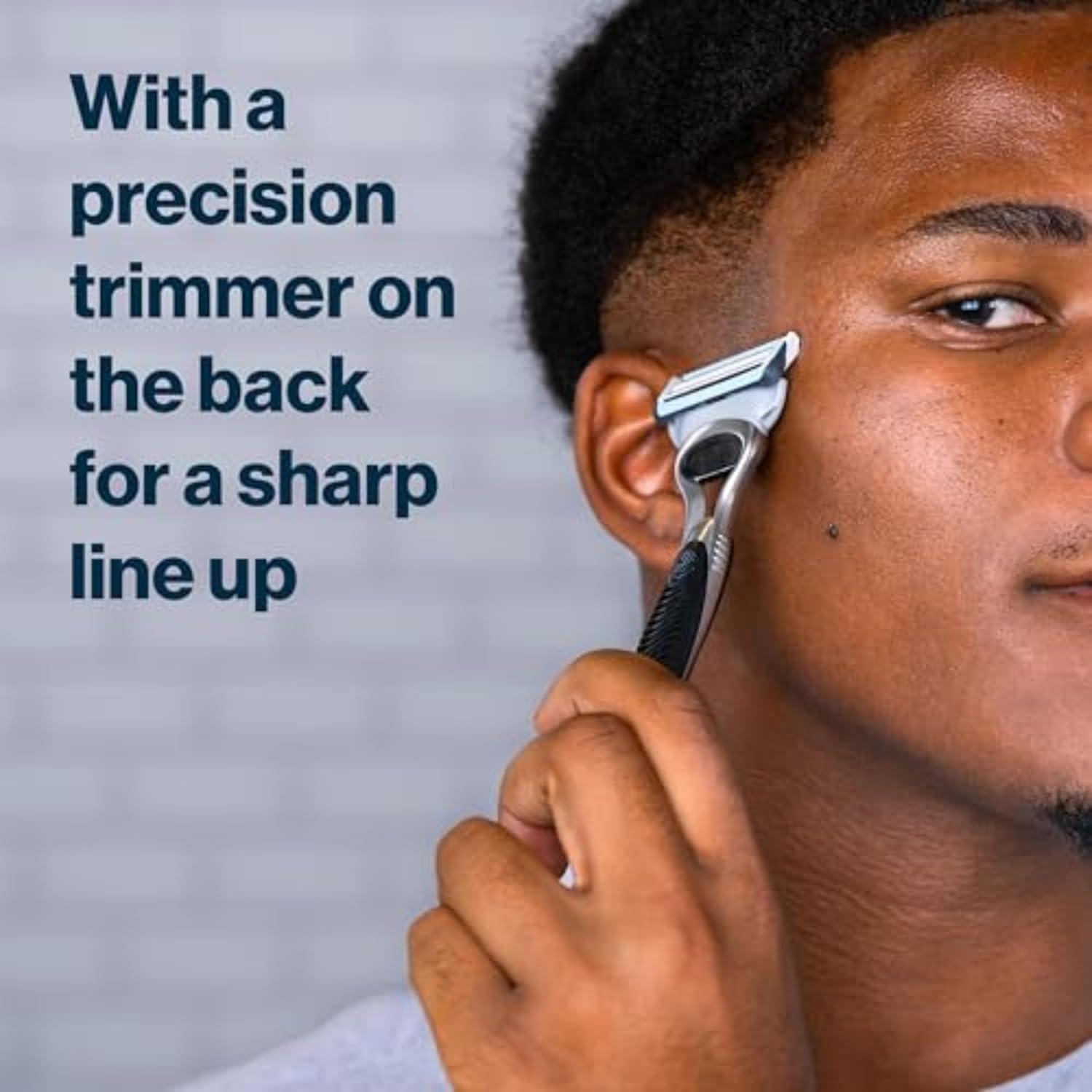 The Gillette SkinGuard razors were designed for a great shave that helps prevent irritation and razor bumps. The SkinGuard feature smooths your skin and protects it from the blades, all while cutting hair at the skin level to help reduce tugging or pulling. The 2 low-cutting-force blades and lubrication before and after the blades help shield skin from irritation. Made with an ergonomic handle, these razors maximize your control and overall shaving experience. The precision trimmer on the back of the razor is perfect for styling facial hair and shaving hard-to-reach places. The microcomb helps smoothly guide hair to the razor for a comfortable, close shave. Each blade refill lasts up to one month of shaves. The SkinGuard razors are clinically proven for sensitive skin while giving you the reliable shave of Gillette razors. Your shave will have the right blend of closeness to avoid potential irritations you may have experienced from other razors. This may be a bit different from the Gillette shave you’ve experienced in the past but you will still get a great shave that helps stop irritation and razor bumps.
