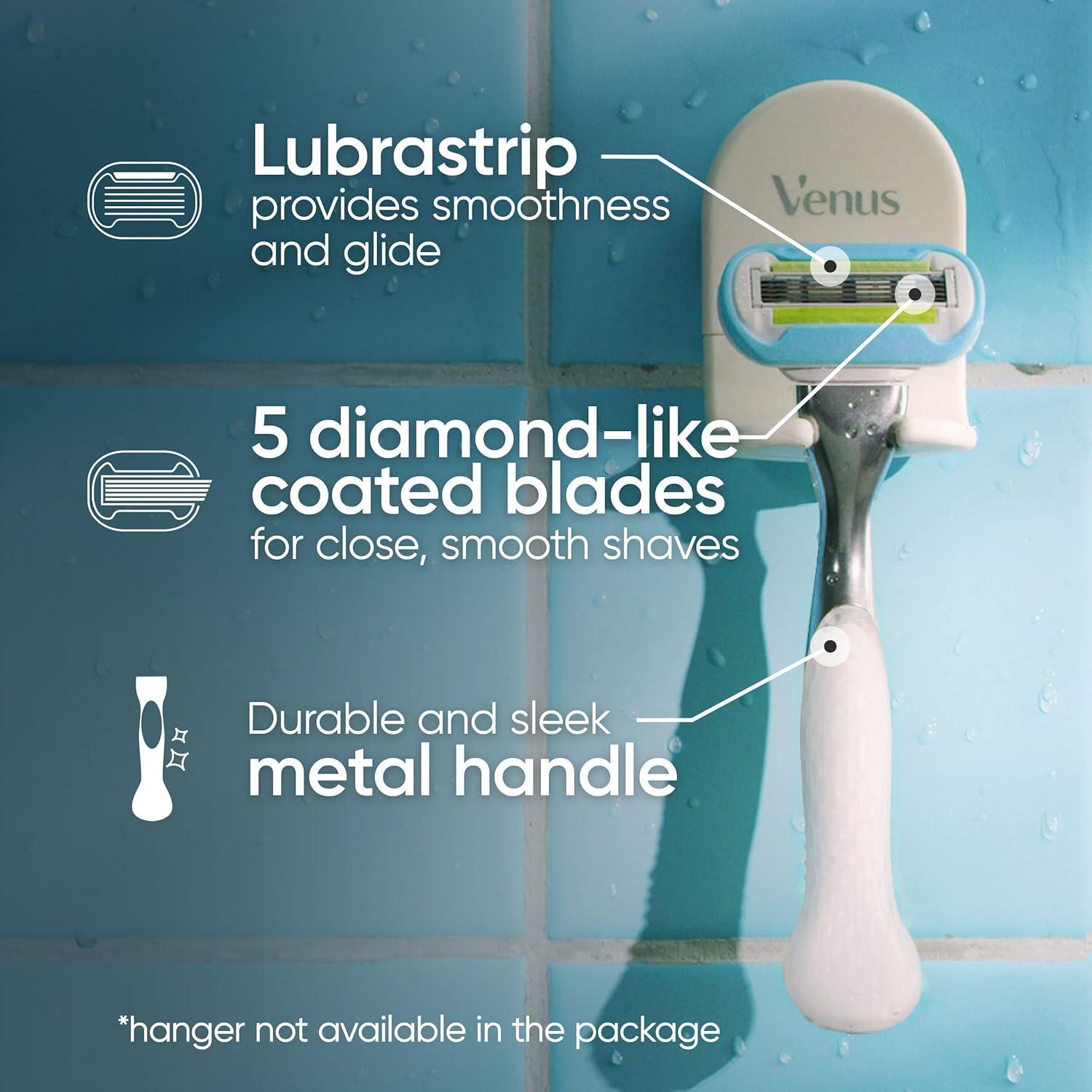 Gillette Venus Platinum Extra Smooth Metal Handle Women's Razor Handle + 4 Blade Refills, Pivoting Head and Ribbon of Moisture(Platinum Handle + 4 Refills)